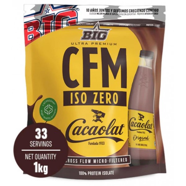 CFM ISO ZERO de BIG® elaborada exclusivamente con aislado de proteína de suero al 90%.