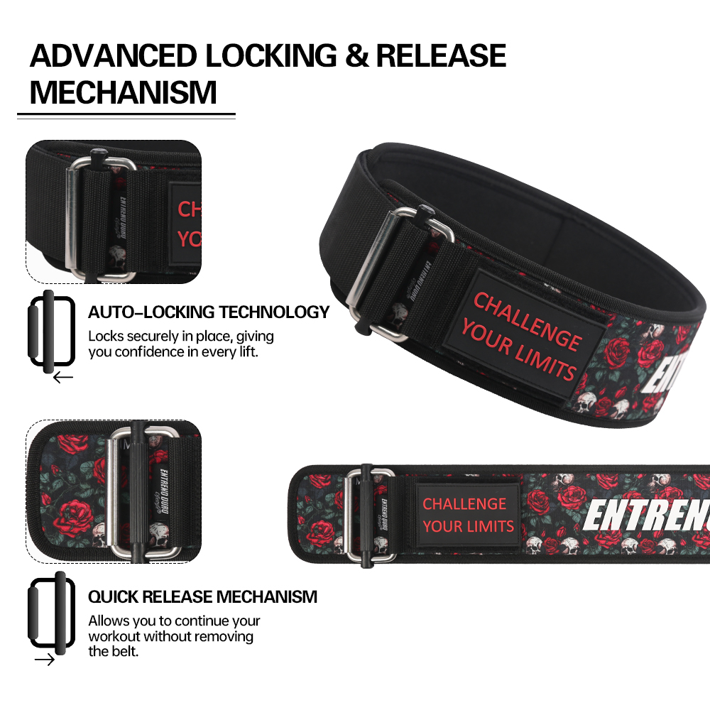 Hebilla versátil y tirador de goma: La hebilla está diseñada para ofrecer dos modos de uso: el ajuste estándar para tus entrenamientos diarios y un ajuste más firme para levantamientos de pesos elevados. Gracias a su resistencia, garantiza un soporte y seguridad total durante tus ejercicios más exigentes. El tirador de goma facilita el ajuste y permite ponerte y quitarte el cinturón rápidamente, adaptándose a tus necesidades en cada sesión.