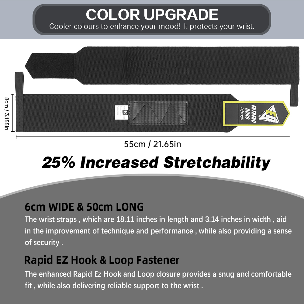 Muñequera elástica ajustable para halterofilia, powerlifting o cross training. Con cierre de velcro. Aportan un extra de protección a las muñecas y son muy resistentes.