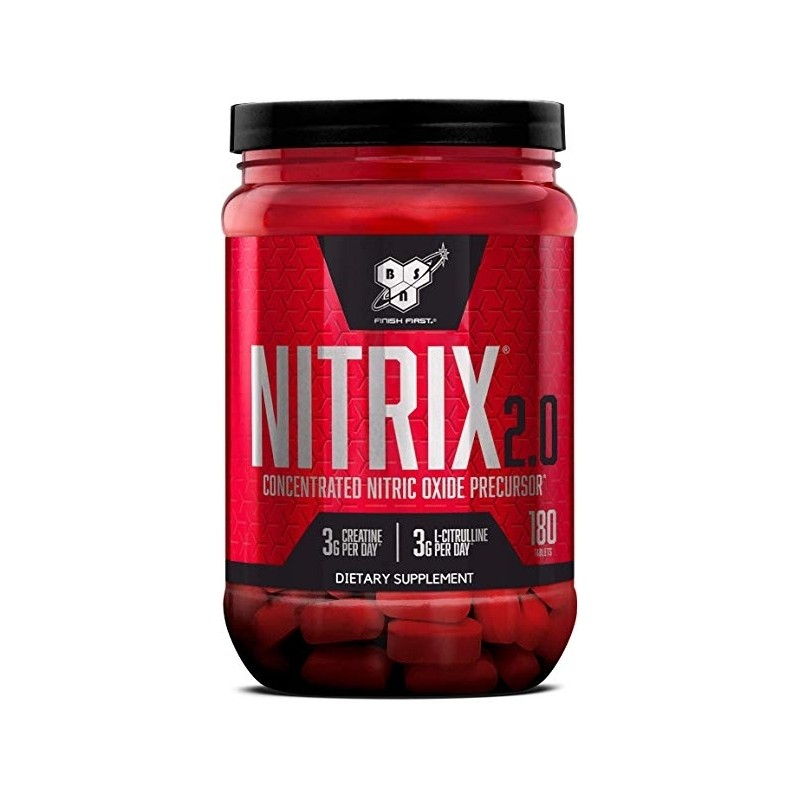 Nitrix 2.0 de BSN es un potenciador del óxido nítrico creada para favorecer e incrementar la congestión muscular y la resistencia. Su nueva fórmula contiene 3 gr de L-citrulina, el precursor más importante del óxido nítrico. Al aumentar el óxido nítrico conseguiremos unos mayores bombeos musculares, aumentará nuestra resistencia y mejorará nuestro rendimiento durante el entrenamiento.